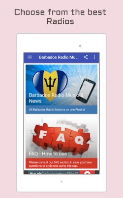 * Easy to use app! * Turns radio automatically off, when you receive a call! * This is one of the most complete App for Barbados Radio Stations.